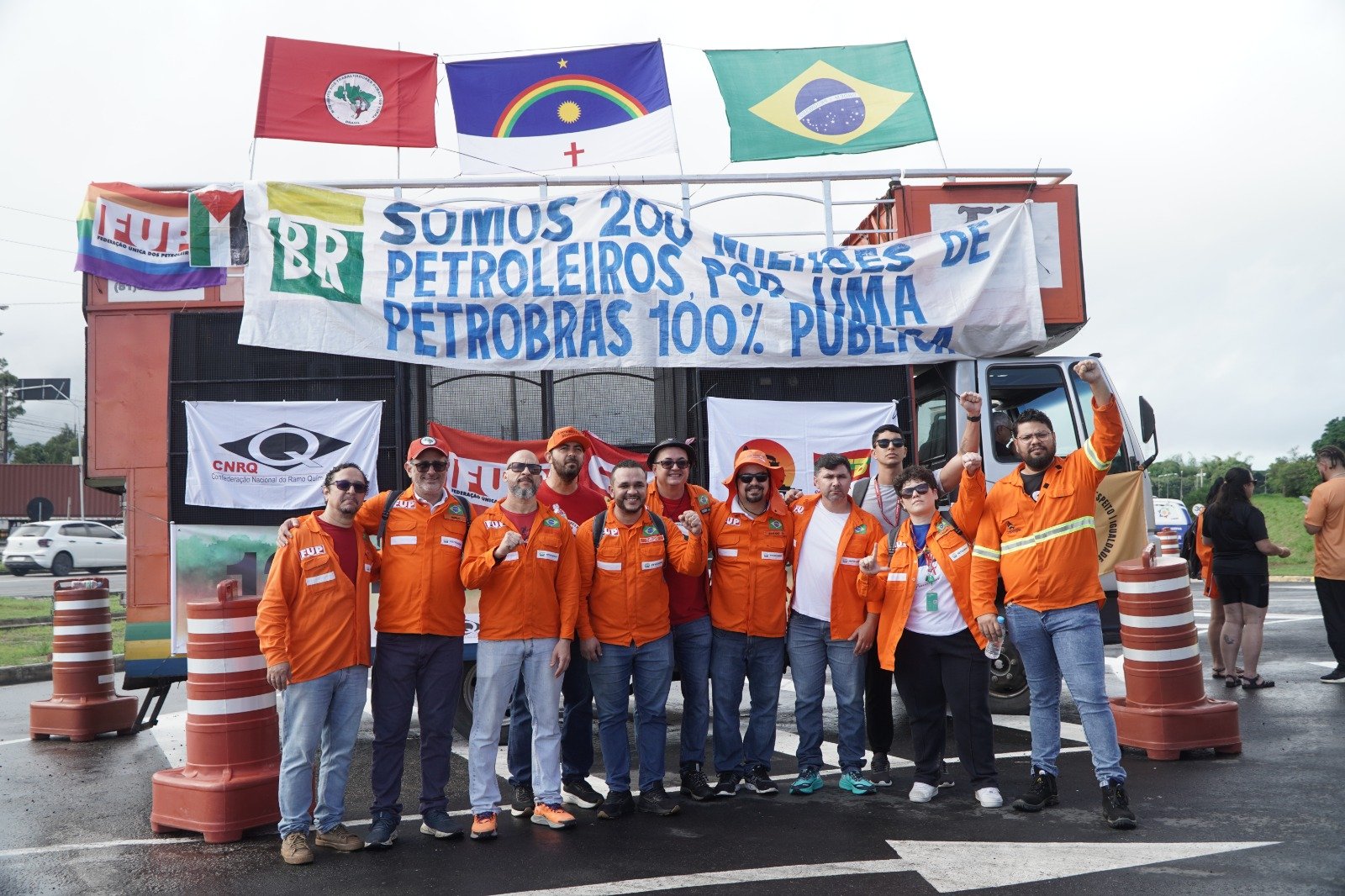 Não teve chuva, vento ou sol, tudo ao mesmo tempo, próprios de um típico agosto em Pernambuco, que desanimasse as petroleiras e petroleiros que saíram cedinho do Centro de Formação e Lazer (CFL), onde está sendo realizada as mesas e hospedagens dos delegados da 12ª Plenafup e que foram até Suape, em Ipojuca, local que cedia a Refinaria Abreu e Lima, onde a FUP, representantes da FNP e Sindipetros realizaram o tradicional ato nacional dos petroleiros. Foi potência do início ao fim, com falas firmes saudando a retomada dos investimentos da Petrobrás e o destaque da categoria, em todo o Brasil, à frente dessa luta.
