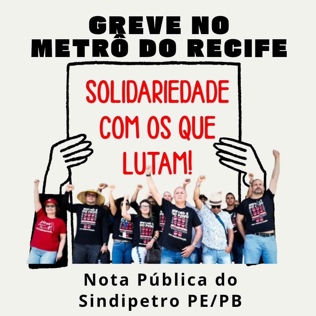 O Sindipetro PE/PB reforça que greve é um direito de toda Classe Trabalhadora e deve ser defendido ante qualquer escalada autoritária e ilegal. Nós nos solidarizamos com os trabalhadores do metrô do Recife e somamos em suas pautas por um orçamento público de emergência, para a recuperação da operação, garantindo o retorno das atividades de transporte público em segurança e com eficiência. Privatização do transporte público não é a solução, pelo contrário, é o cerceamento do direito do povo pobre em poder ter acesso à cidade!